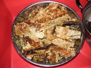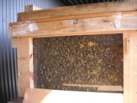 | 採蜜方法 セイヨウミツバチを巣枠式で飼育している場合は、遠心分離機で採蜜することになりますが、ニホンミツバチは、巣枠で飼育しても、巣が非常にもろく、とても分離機の遠心力に耐えられません。 そこで、昔ながらの、ザルを使っての垂れ蜜という採蜜方法をとります。蜜の貯まった巣ごとザルに乗せて、蜜が重力で自然とポタポタ落ちるのを待つ、という昔ながらの採蜜方法です。効率は悪いですが、上質のハチミツが採集できます。 |