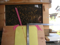 | 採蜜時に巣箱内部を点検しました 掃除も内検もしない私ですが、採蜜時に巣箱内を点検すると、去年に比べ格段にスムシの害が少なくなったようです。 掃除は蜂まかせです。蜂群が順調に大きくなり健康だと、掃除の必要がないほどに自分たちで綺麗にします。 巣箱内は観察窓から十分見ることができるので、箱の蓋は採蜜時まで開けませんでした。 ミツバチもスムシのストレスのない日々を送ってのではないかと、想像している次第です。 巣枠も穴を開けられることもありませんでした。 何より1年を通じて、蜂児捨てがまったく起きなかったことは、偶然かも知れませんが スムシ捕獲器のおかげではないかと自我自賛している次第です。 500メートルほど離れた友人のニホンミツバチは、相当の数のスムシに食害され巣枠を穴だらけにされました。 その群は盗蜂にあったりした群で、採蜜時に女王を殺したのか、原因は定かでありませんが、消滅しました。 |
