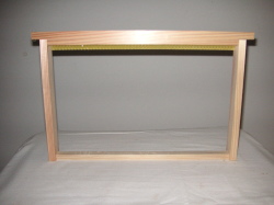 巣箱の中の9枚の巣枠がこのようになれば、4枚ほど残せば越冬には十分だと思います。 5枚採蜜すると6〜7キロの蜜が取れます。 5、越冬していた巣枠です。黒くなっているところで蜂球を作りまわりの蜜を食べながら、長い冬を乗り切るのです。 採蜜は遠心分離機は使えないので、蜜巣を切り離して垂れ蜜を採取します⇒こちら 遠心分離機を使わないので、巣礎全面張りの必要が無く、ミツバチも快適に増巣してゆきます。 また、巣礎の使用量が少なく、経済的でもあります。1枚の巣礎から15枚ほどの巣枠ができます。 |