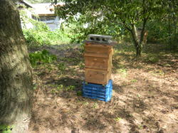 - 8月20日頃、クモの巣だらけの巣箱のまわりに、クモの巣に引っかからないようにホバリング飛行をする働き蜂を観察。